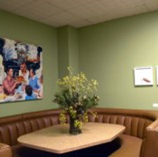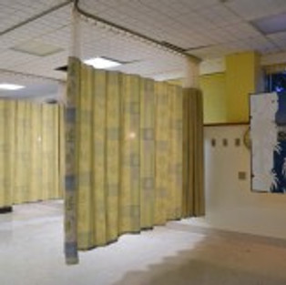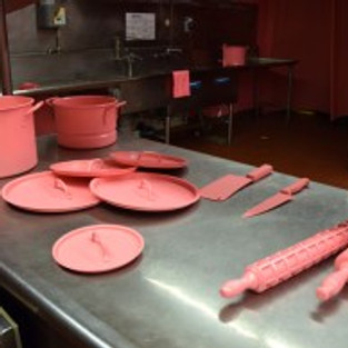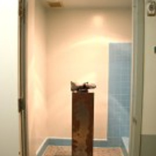 There is the psych ward’s violently fuschia room installation by Amir H. Fallah, a visual depiction of a cluttered mind; the shower room housing Gintare Bandinskaite mixed media sculpture of a blood-filled tub; Matt Wedel’s ceramic sculptures in operating rooms; Christopher Reynolds’ salmon pink coating of utensils and walls in the hospital kitchen.