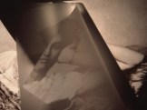 Searching for moments that she calls “threshold” experiences, she asserts that she’s captivated by light, and the qualities with which it illuminates or veils what she sees both in her mind and through her camera lens. The luminous quality – a kind of inward emotional and outward physical glow – to her current work is due, she says, to combinations of objects, images and light.