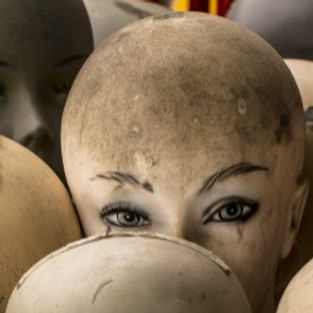 Another favorite subject is “Holly,” a mannequin head. “I loved her eyes, she has such interesting eyes, and she has the word ‘Hollywood’ etched on her chest. She came from Hollywood Props, and was once used as a model at Metropolis for Wigs in Hollywood.”