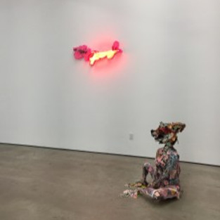 So there are two basic ways to curate a group show, especially one on this scale. Either by shared formal or material attributes, or thematically, to examine an idea. If you’ve got an idea, you might actually want a literary, eclectic array, mixing emerging with a-list, international with local; and of course all the mediums, all the perspectives of identity, all the categories of imagery and processes, materials and messages, historical and avant-garde. It’s exciting. But it still has to look good in a room. Guest curator John Knuth (whose own art in the show involved fly puke, naked men, and live snakes, in no particular order) worked with the gallery’s Global Director (and man having all the fun at work) Ben Lee Ritchie Handler to flesh out the aspects of this self-evidently manifest premise. In a nutshell: It’s all wrong, but it’s alright.
