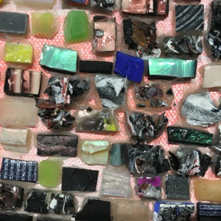 Larry Bell’s exhibit is entitled Complete Cubes, and is a retrospective of his six decades long career. The curatorial idea here is to “organize Bell’s iconic glass cubes by scale showcasing an example of every size the artist has produced from the 1960’s to the present. “ The first cube one sees is tiny – just 5 inches square – and as one walks along the cubes get slowly larger. The installation is set up almost like aisles in a jewelry store, with the cubes on pedestals designed by Bell, one right after another.