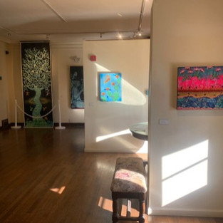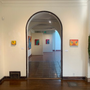 This exhibit exposes Luna’s bold showmanship. His bright and layered textures and colors reverberate throughout the quaint gallery space. The overall layout of the show works seamlessly with the architecture of the gallery. Minute hummingbird paintings are hung intermittently around the room and next to doorways as though fluttering in and out of the passages. Between small room dividers hang larger portraits which are uniquely framed by the space’s walls. Because the gallery was once a home, Luna’s pieces are lovingly hung in uncommon nooks that transform the space into a refreshing contrast to the gallery cube.