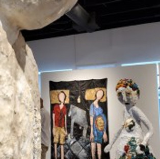 Written by Betty Ann Brown Ghosts fill Castelli Art Space. A tall, columnar man stands in silent witness. Two children hover above a bunk bed of buttons. Shadowed faces shimmer behind curtains of time and loss.