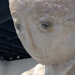 For this viewer, the most poignant space in the exhibition is the pairing of two of Nedivi’s large sculptural works. One is a female grasping a small wraithlike child who reaches up with aching intensity to embrace her. Facing them is a tall, thin man, his heavy egg-like head bending wistfully to one side. The space between the two sculptures is fraught: I can feel them longing for each other, bending towards each other… and yet, they remain apart, alone and vulnerable. That sense of isolation and yearning must have been constant in the camps–and it must have been one of the emotional wounds carried by all of the survivors.
