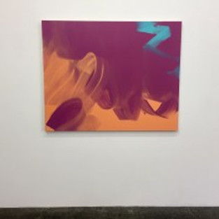 Within each single work, no matter the color story, in this series Callister deploys an approach that yields what appear to be slightly oversize single brushstrokes. These are bunched and arrayed according to rotating polarities with segmented relationships between pigment and directional vectors. Each loop/stroke is like a Mobius strip, its sense of quick gesture intact, as though it’s enlarged or else you are shrunk and can see inside its structure, the skeleton and vascular system of each one blown up for more detailed scrutiny. They have the dense energy of a tight style, but can be read at a distance at an explosive scale. The pigment is not translucent but the imagery seems to be, that the empty atomic space inside each loop reveals the underpainting behind it.