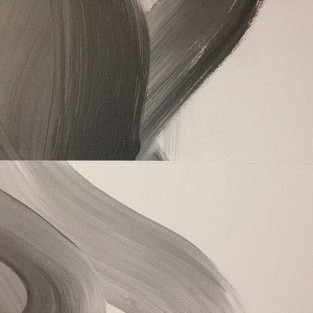 This energy is not only optical and formal, it also speaks to an indirect narrative underpinning that for lack of a better term, the artist considers political. It’s not overtly political in a content or messaging sense, being entirely non-representational. It’s more like the slightly frenetic multiplicity of their compositions is reflective of the cognitive dissonance and emotional agitation that results from the current politics. Even though they are beautiful in a darkly elegant posture, they are ultimately uncomfortable, a little disorienting. Each image in its own way prevents the eye from resting, there is no center, there is no truly solid ground anywhere. Suggestions of ground are ruthlessly halved and flipped sideways; pictorial space is subverted.