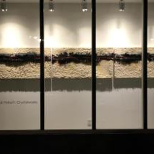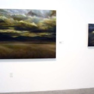 Crystals envelop Randi Hokett’s mixed media series where she destroys then builds up her shimmering surfaces. She grows the various crystals in an onerous process that echoes the natural formation of rocks and erosion, then manipulates and paints them. In this case, her work, Rift, is stained a deep blood red crimson. Photographs by Ron Pinkerton also reflect the otherworldly aspect of the desert from luminous night skies with emerald green water tanks to old, decrepit shacks that he deftly manipulates by creating glowing, jewel-like colors. Samantha Fields also works intensely with the dreamy look of the barren land as she fills her painted landscapes with atmospheric drama, dark and light, reflecting the desert’s extremes.