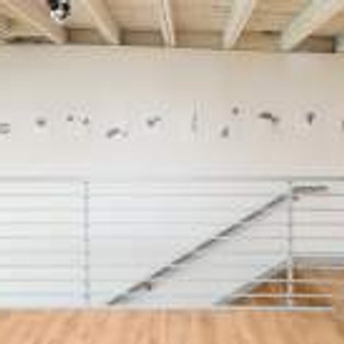 The ground floor of the gallery features several large ethereal paintings by Elisa Johns. The artist, who lives in Los Angeles, spends her summers backpacking in the Sierra Nevada Mountains and these paintings were inspired by her experiences. In Kings Canyon, which is both the name and subject of the show, Johns suggests rugged mountains and ravines with gestural marks against white backgrounds while cool washes of blues and grays indicate shadows and skies. Her calligraphic approach renders the massive landscapes weightless and almost formless with an emphasis on energetic geological forces instead. In some areas the heavily applied paint give the surfaces a textural and decorative interest almost in contradiction to the subject matter, but in Kings Canyon, the viewer is happy to dwell on the atmospheric surfaces as well as on the landscapes themselves.
