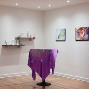 Michael’s Restaurant in Santa Monica has a long history of involvement with art and artists. The walls on the lower level are covered by artworks by well and lesser know artists, many who traded art for meals. Michael and his artist wife, Kim McCarty have collected art since the restaurant’s beginning and off and on have hosted exhibitions on the upper levels of the space. Kim curated numerous exhibitions over the years but has recently turned over the reigns to Christopher Schwartz who is has curated the current exhibition, “Pond and Waterfall” with Julia Trotta (granddaughter of art historian Linda Nochlin). The exhibition presents works by sixteen artists and takes its title from a film installation by Barbara Hammer (who is included in the show) where the camera moves through a serene pond toward violent waters. Although the film is silent, viewers are invited to listen to their own heartbeat via supplied stethoscopes which becomes the sound track. The curators invite viewers to chart their own trajectory through the works on view thinking about their interconnectedness with respect to the body and the environment.