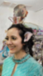I asked Mordechay about her paintings and the forces that have guided and shaped her art. “As a child I had visions and out-of-body experiences. I used to sleepwalk and felt as though I was seeing myself in past lives. I always felt more connected to the spirit world than to the physical world. My parents experienced a lot of trauma. They were born in Iraq, but were forced to leave due to issues of war, political violence and oppression. They moved to Israel where they met and where I was born. In some way, those experiences were passed down to me. As a child I lived through periods of war, where the town we lived in went through weeks of intense bombing. When I was one years old, we moved to Africa, where my father worked in development and managed building projects. The impact of the art and culture of Africa had a powerful effect on my consciousness. We had many African sculptures in our home that were given to my father; these seemed to come alive at night and entered my dreams.”