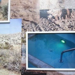 “Meet Me in the Middle” is the first solo exhibition of Talia Shipman’s multidisciplinary works at Chimento. It is being presented in conjunction with the Back Gallery Project from Vancouver, where the artist was raised. For this show, the artist has combined elements of photography, video, and installation. At first, the viewer observes what appears to be a serene milieu. A wall-sized collage of photos and objects. Images that use cool tones of blue amidst an open desert sky. But then the questions make themselves known. Is an empty bag from the 99 Cent store a humorous jab at consumerism? Is the image of a swimming pool set against an arid backdrop a comment on ecological abuse? The artist has stated that the installation explores the environmental impact of human activity while also commenting on her own quest for identity in the face of global crisis. Both of those journeys are readily apparent and make for a memorable show. The results have led to “Meet Me in the Middle” being acquired by the HBC Global Collection as a permanent installation in New York.