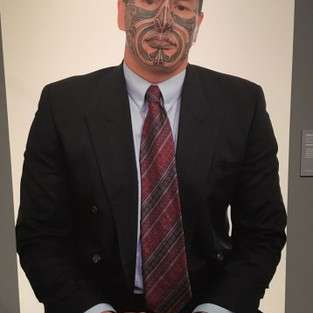 The exhibition continues with the tattooing customs and beliefs of both the Inuit Indians, whose women wear chin stripes to announce that they are ready to marry and Mojave Indians, who believe that facial tattoos assure that they will go to The Land of The Dead after death. Facial tattoos are crucial to the Maori tribe of New Zealand and one of the most striking images is an extremely large and somewhat confrontational color photograph of Dion Hutana, in a suit and tie sitting quite formally with hands folded politely on his lap. His completely black lined tattooed face is an unexpected contrast with the formality of both the pose and the Western business attire for us in the west. Dion says: “Taking ta moko (Maori tattoo) has been and is part of my well being.”