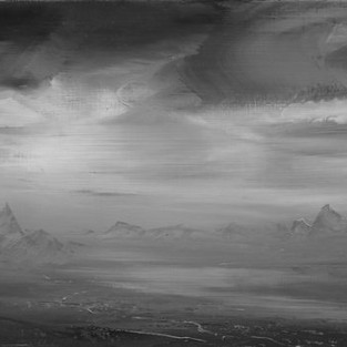 Painter Todd Carpenter has a unique relationship to photography; a counterintuitive inversion in which his eye and his technique take an empathetic rather than a competitive stance toward photography’s concerns. A connoisseur of ostensibly classical motifs like clouds, forest clearings, cityscapes, and slanting sunlight, Carpenter’s take on representing the natural world is not significantly naturalistic. For an obvious start, he works almost entirely in grey scale. As each individual work unfolds, a panoply of further high-minded eccentricities make themselves known. But a consideration of his palette of black white and grey is unavoidable.