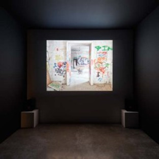 What makes William E. Jones’ 30 minute video, Fall into Ruin so seductive and captivating is the use of first person narrative. Via voice over, Jones relates a story about his first trip to Greece in 1982, meeting the renowned gay art dealer and curator Alexander Iolas (1907-1987) and the thrill of staying in his expansive villa. As Jones talks, still images he shot in Greece in 1982 and on a subsequent trip in 2016 appear on the screen documenting the villa in its heyday as well as its current state of disrepair.